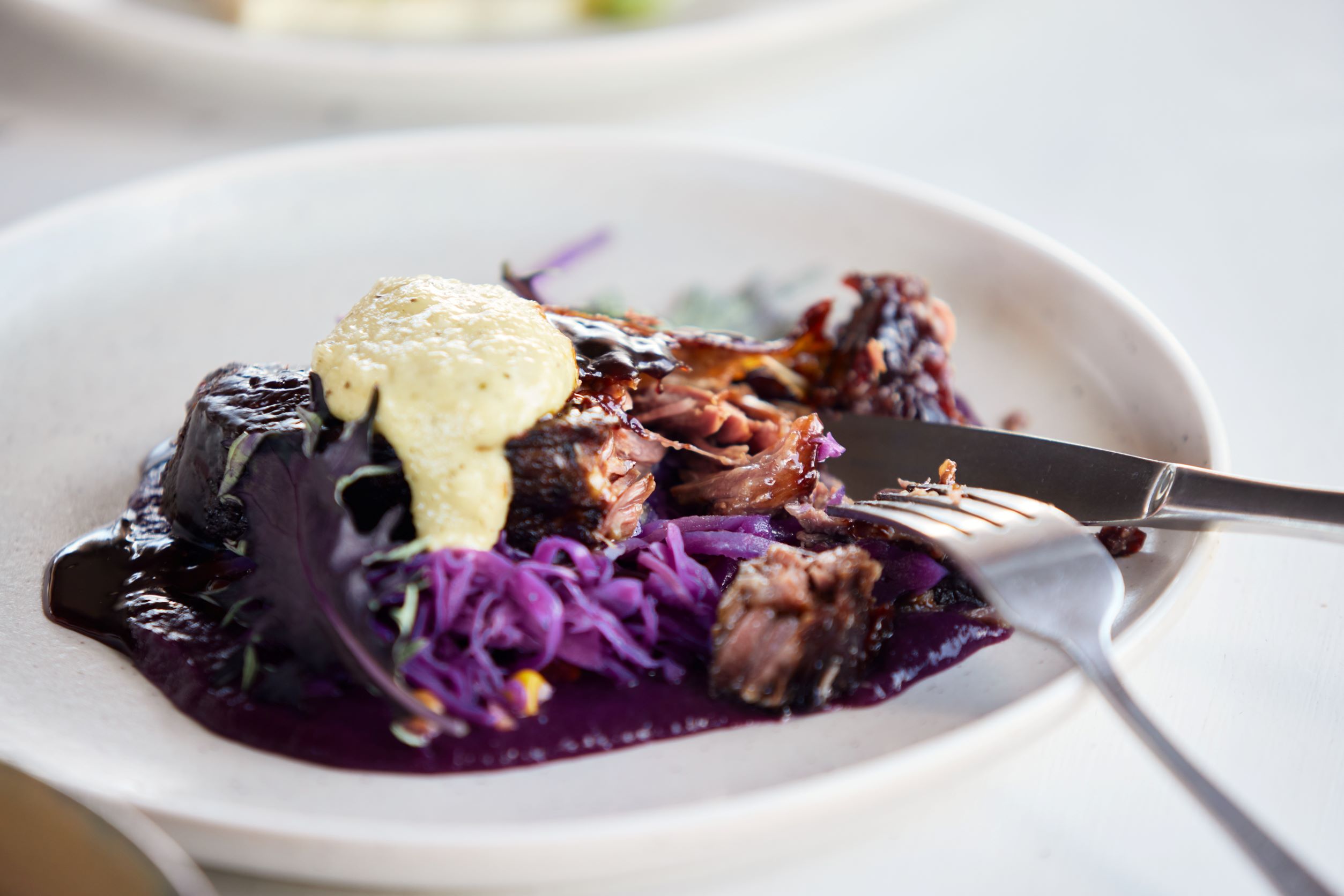 Isabella’s Restaurant Summer Set Menu (available 11:30am-3pm) includes a mouth-watering main course of slow cooked beef oyster blade with pickled summer cabbage, beetroot, smoked almond and cherry puree. Pairs perfectly with our Rochford Estate ‘la Droite’ Merlot, Cabernet Franc 2019.
